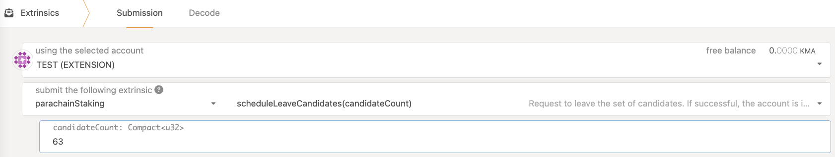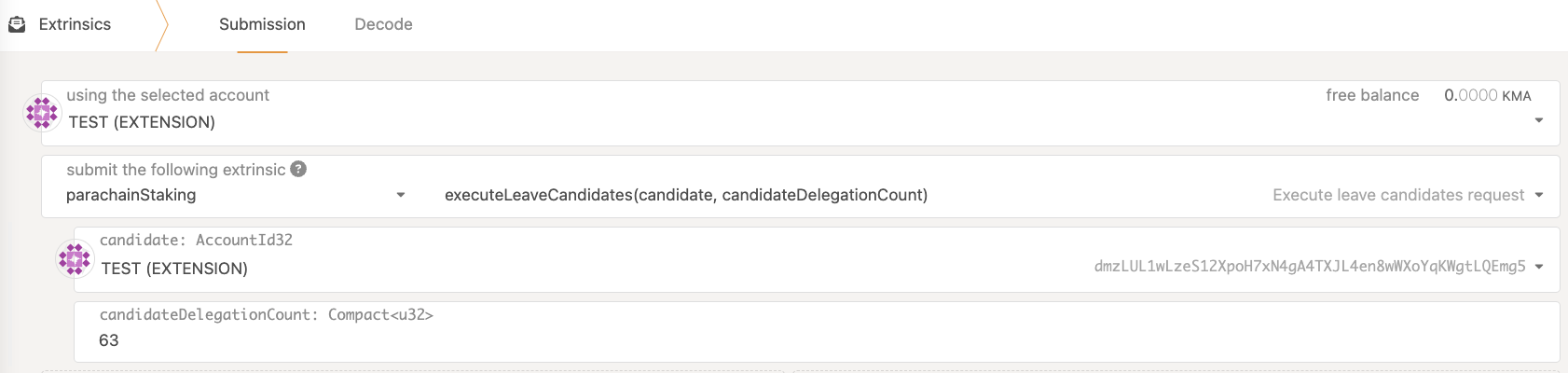 • candidateDelegationCount is larger than the number of delegators on the collator you want to unbond